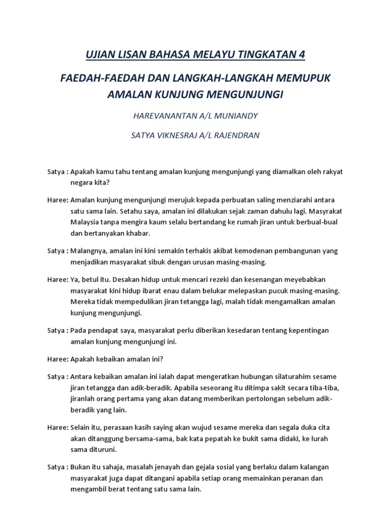 Tajuk soalan akan diberikan berdasarkan sukatan Bahasa Melayu Tingkatan 1 hingga. Dialog untuk 4 orang lisan bahasa melayu waxgebofound26s soup. Sebut mengikut ejaan kecuali Kata Nama Khas.